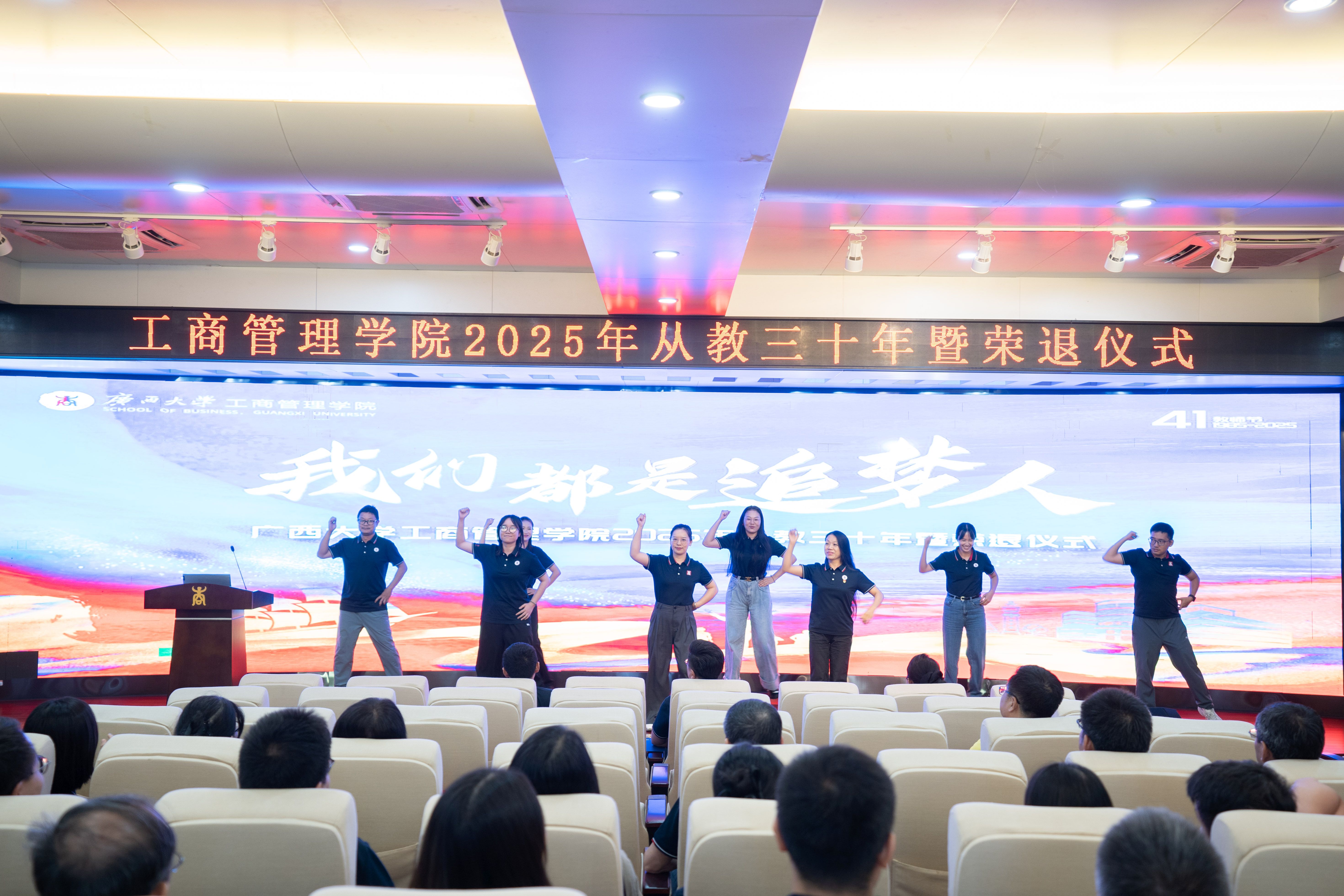 为大力弘扬教育家精神,进一步营造尊师重教良好氛围,9月23日下午,学院128报告厅内乐声悠扬、暖意融融,学院党委书记黄晋、院长朱帮助,党委副书记肖克宁,副院长朱少英、申韬、廖东红、韦铁,学校科研平台建设管理处副处长刘民坤与全院教职工欢聚一堂,举行2025年从教三十年暨荣退仪式,向五位教育工作者致以崇高敬意。