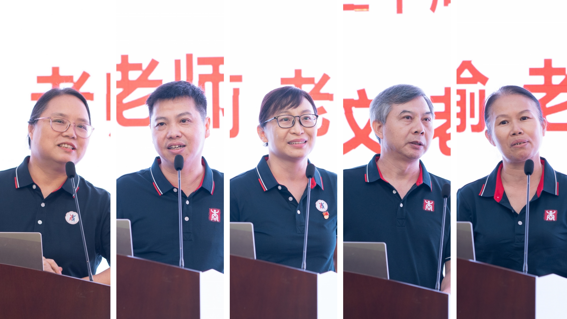 随后,朱少英、韦铁、滕莉莉、张星文、潘思谕老师先后上台发表从教三十年和荣退感言。从满头乌发到两鬓染雪,他们细数教学历程中的难忘瞬间,从初登讲台的青涩懵懂到告别杏坛的从容淡然,他们凝练育人智慧,抒发教育情怀,提炼人生感悟,彰显了对三尺讲台的无限眷恋,传递了对学院发展的美好期许。大家纷纷表示,将永葆教育热忱,在力所能及之处继续为教育事业发光发热。
